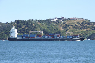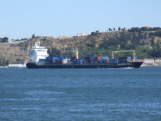 O porta-contentores CSVA RUPANCO, com o auxilio dos rebocadores SOBREDA e SVITZER LEIXÕES, manobrando para acostar ao cais de Alcântara.